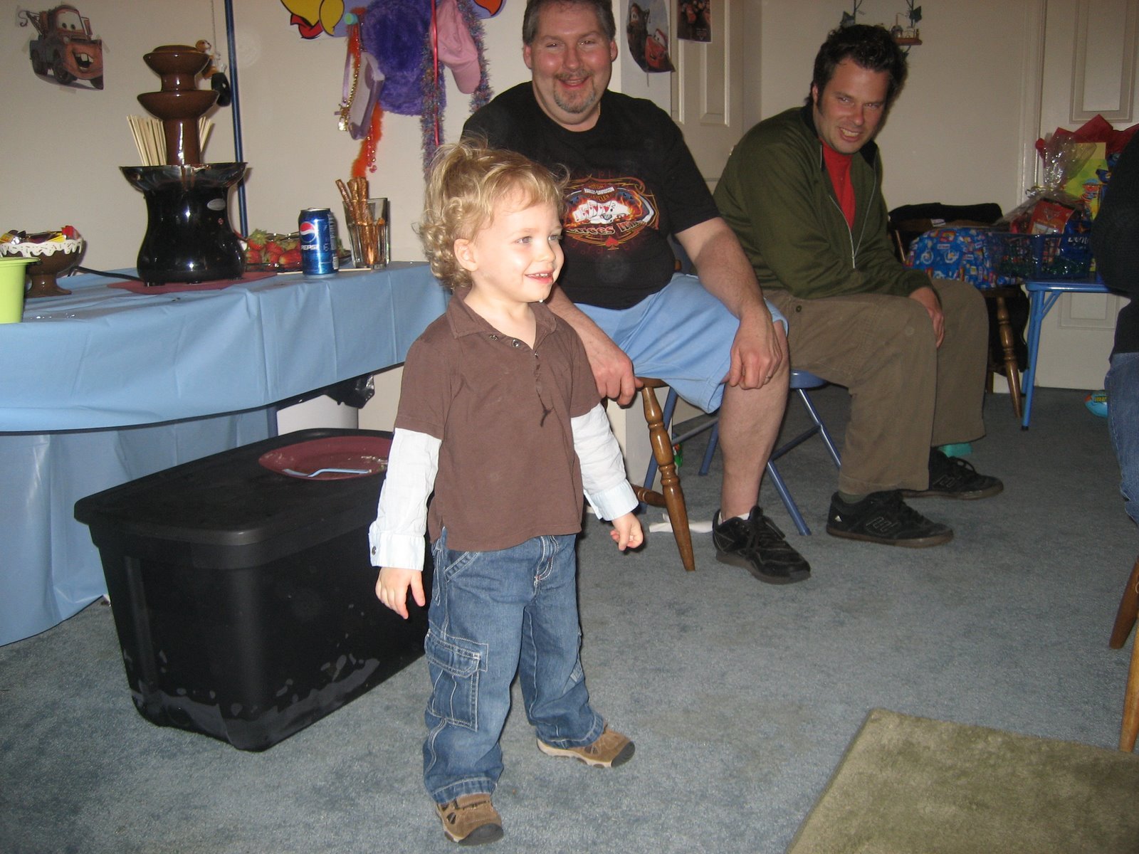 In front of the chocolate fountain -- Charlie, Mike, Uncle Jimmy
