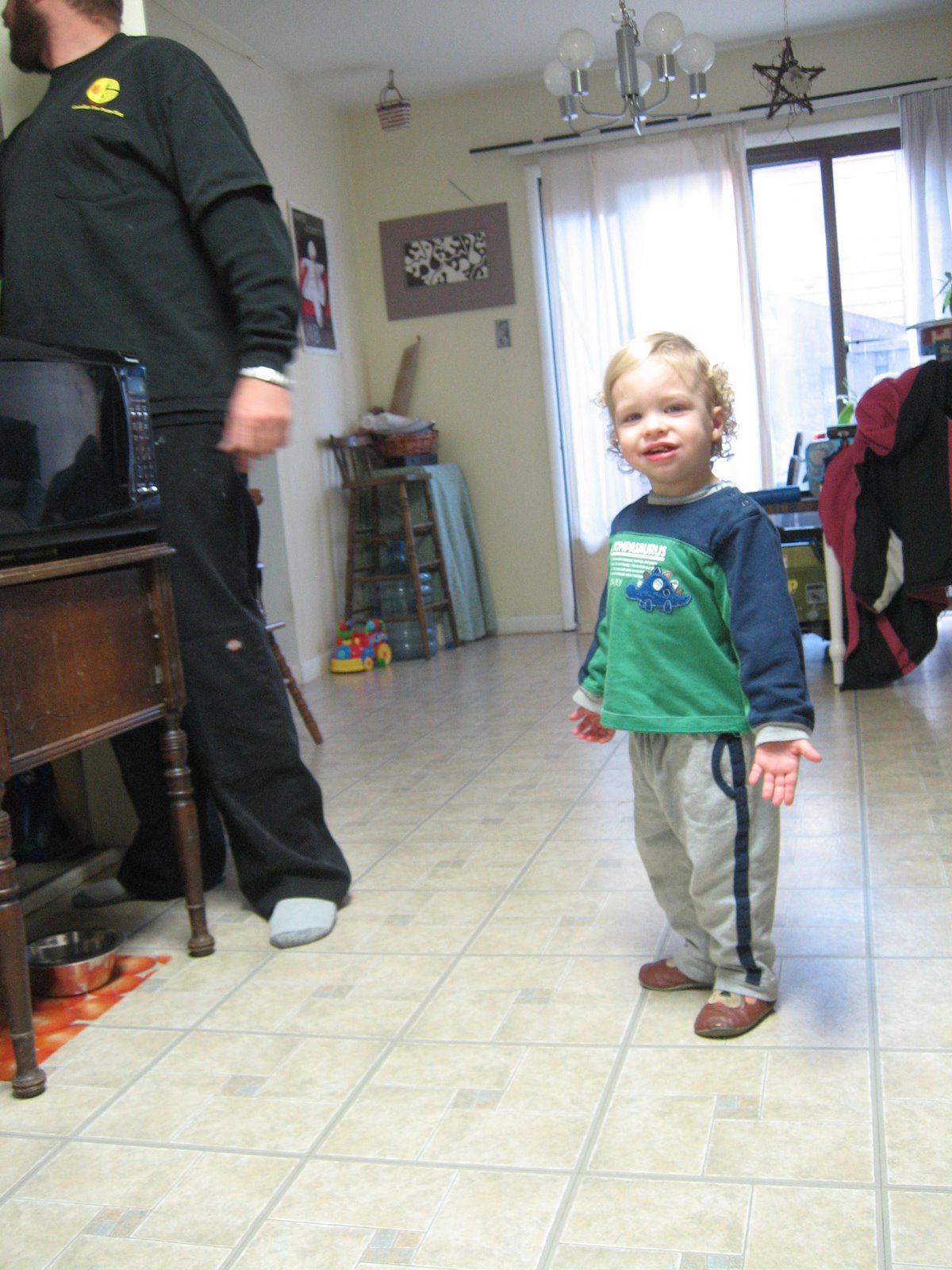 Tall boy, half as big as his dad at 20 months
